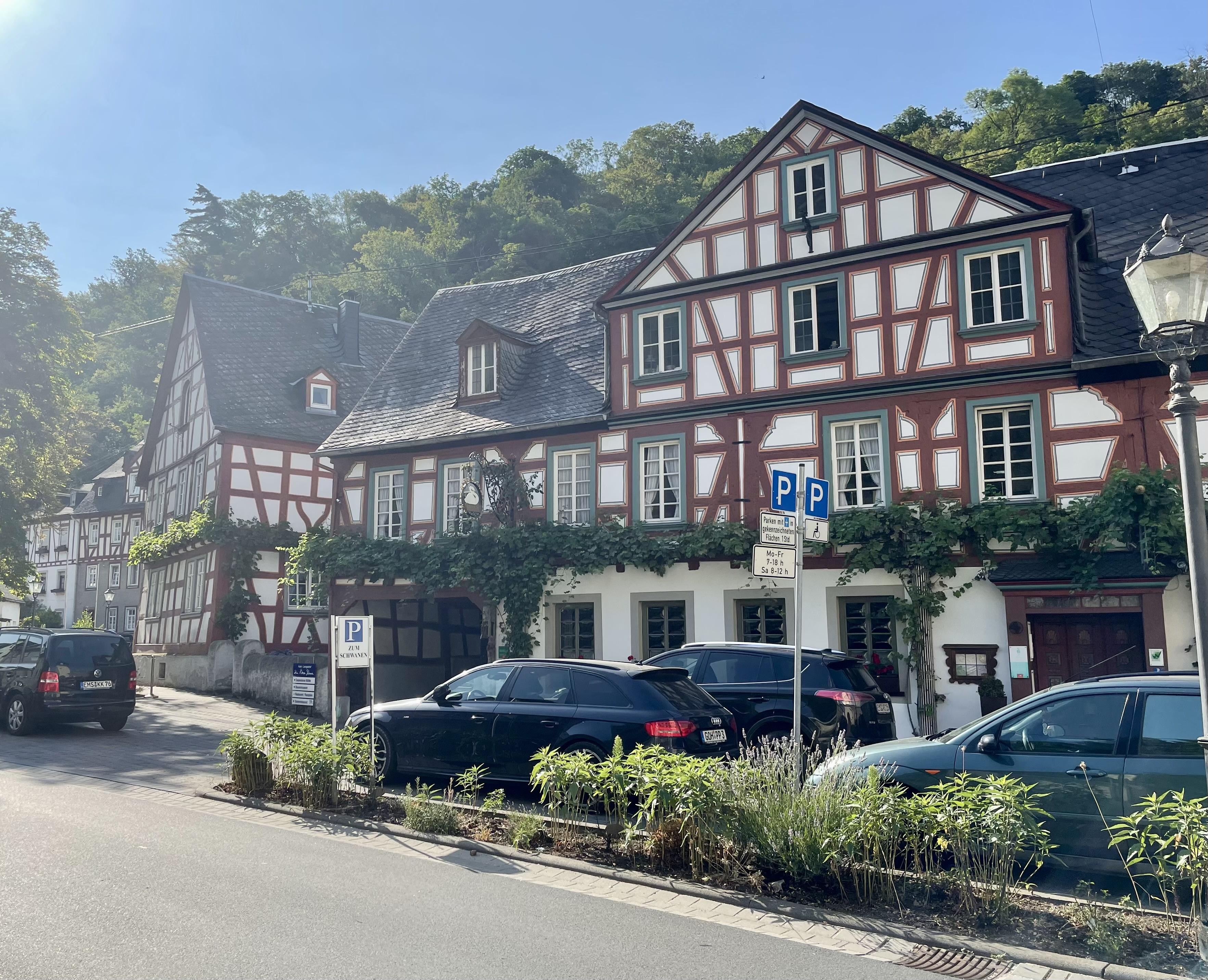 Speisen Sie in einem historischen Fachwerkhaus im Herzen von Braubach.